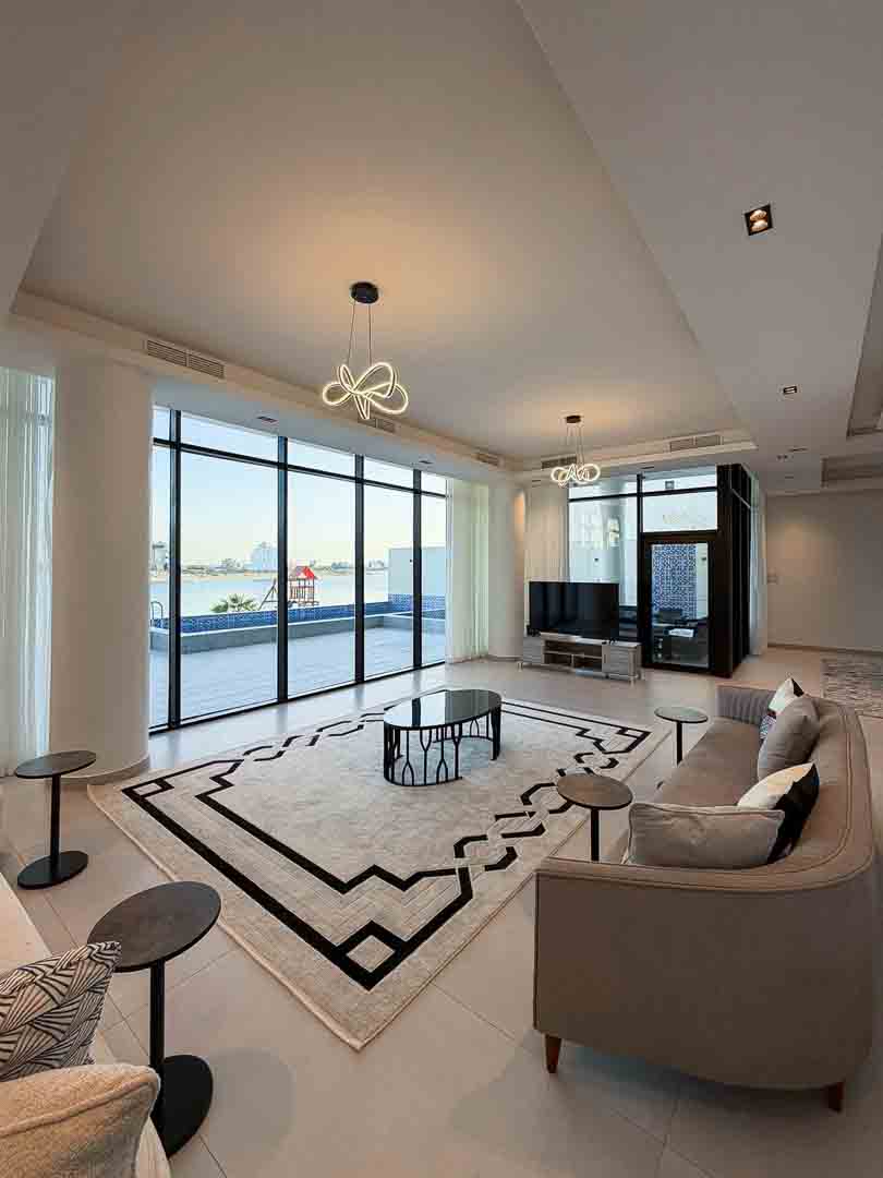 - صالة كبيرة مطلة على المسبح والبحر