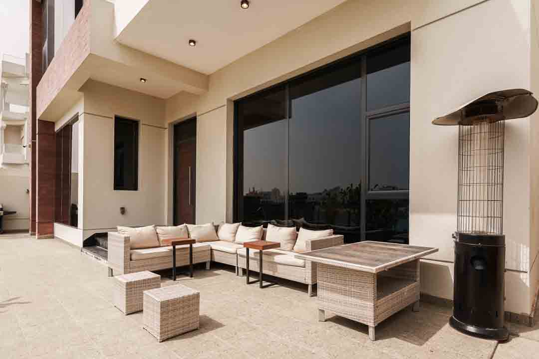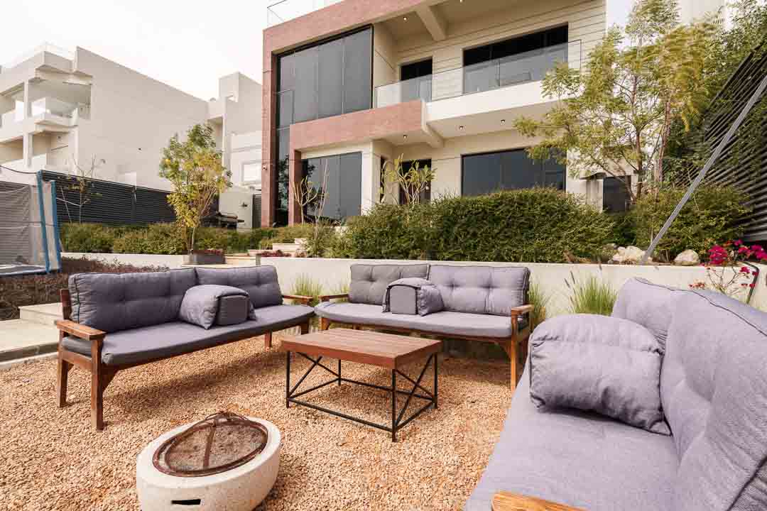 - حديقة مع قعدات خارجيه مطلة على البحر