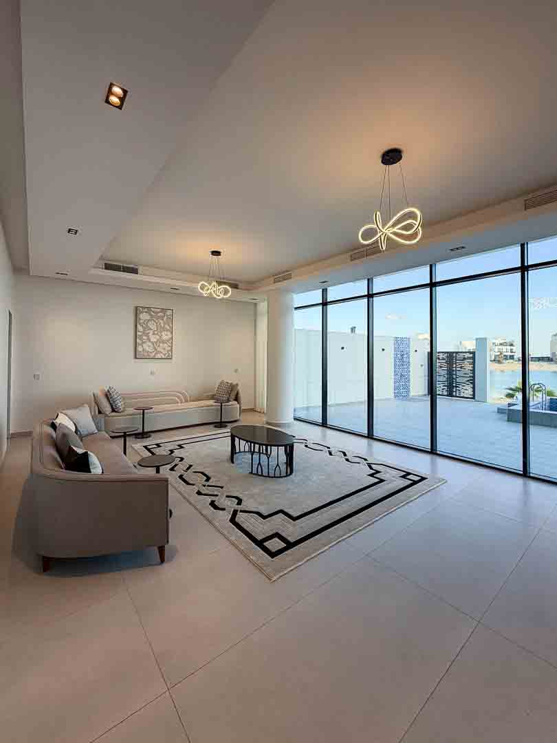 - صالة كبيرة مطلة على المسبح والبحر