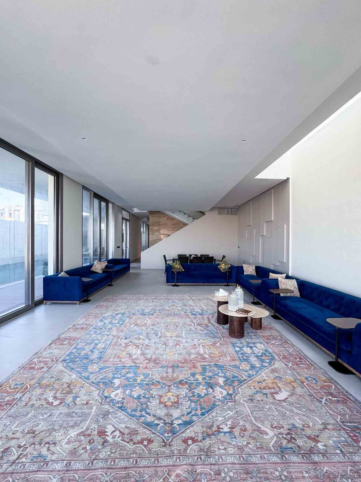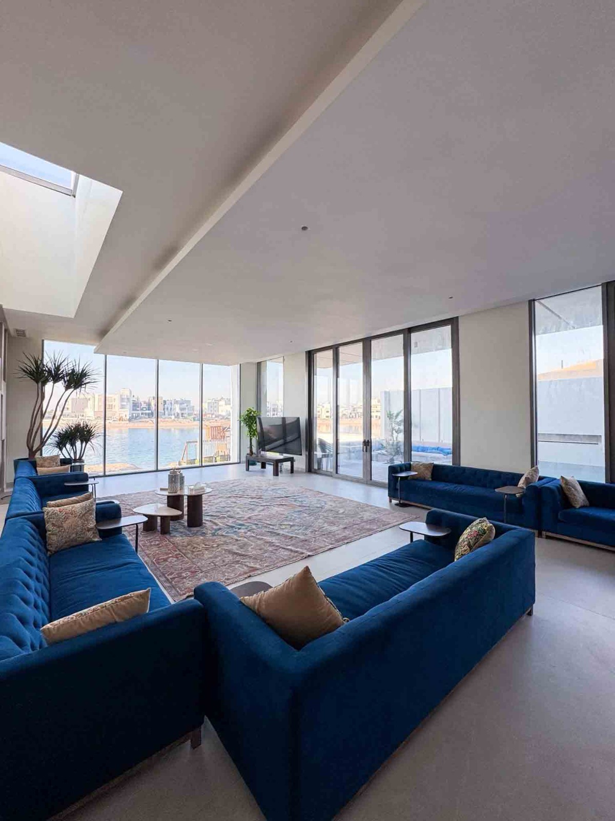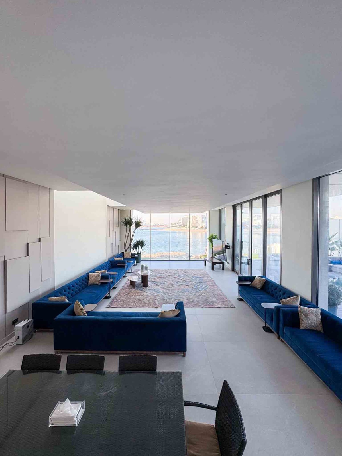 - صالة كبيرة مطلة على المسبح والبحر