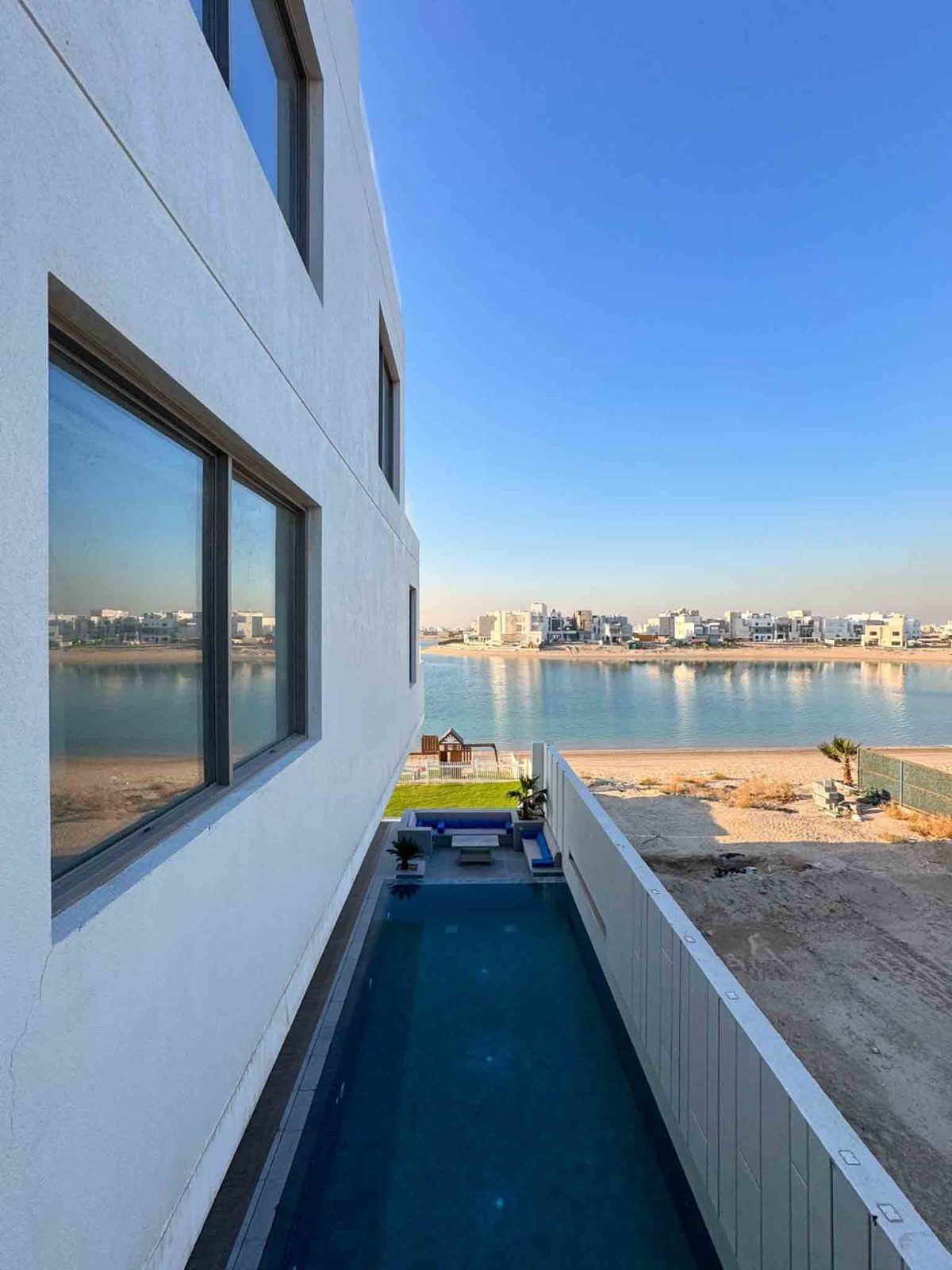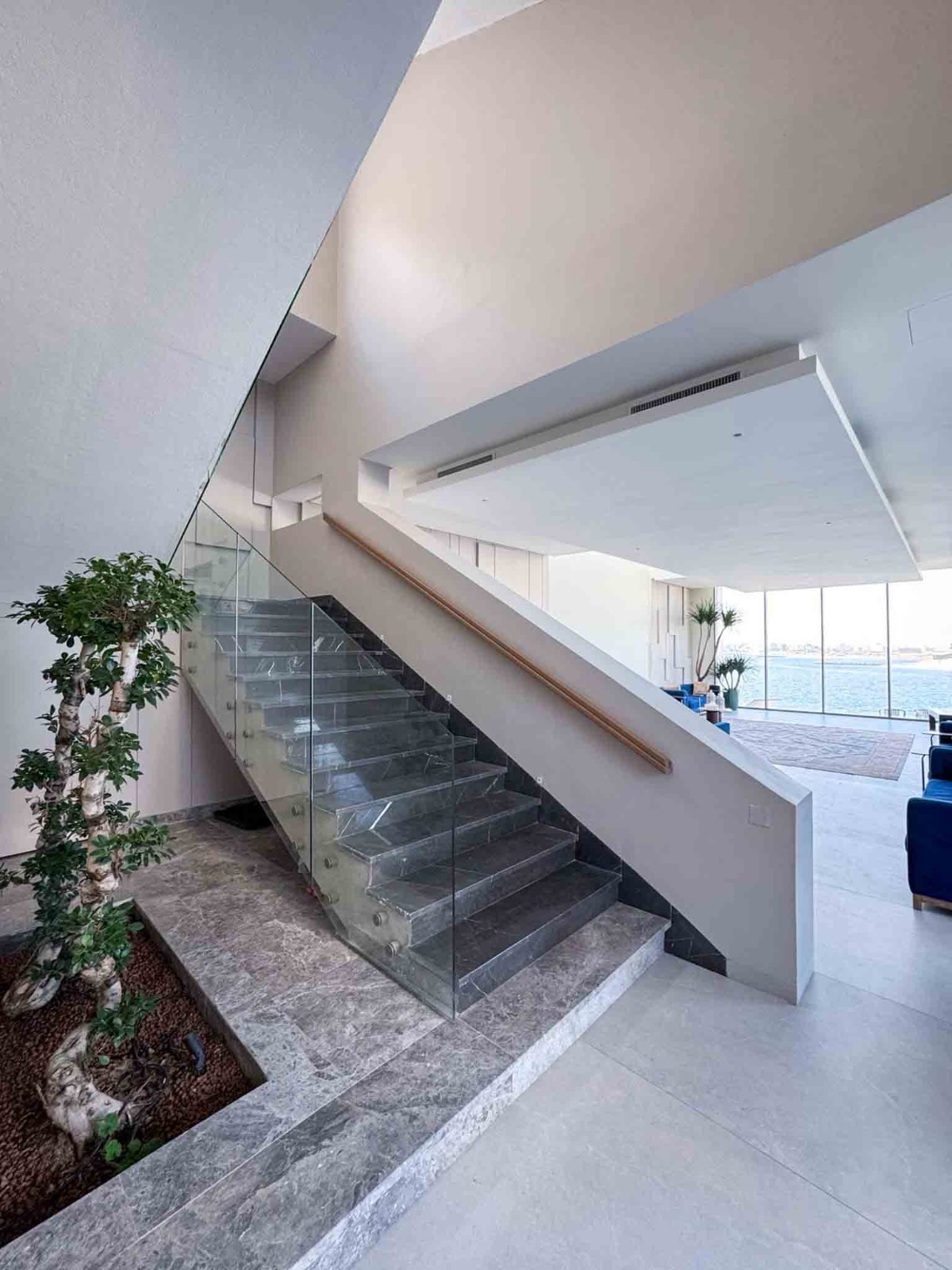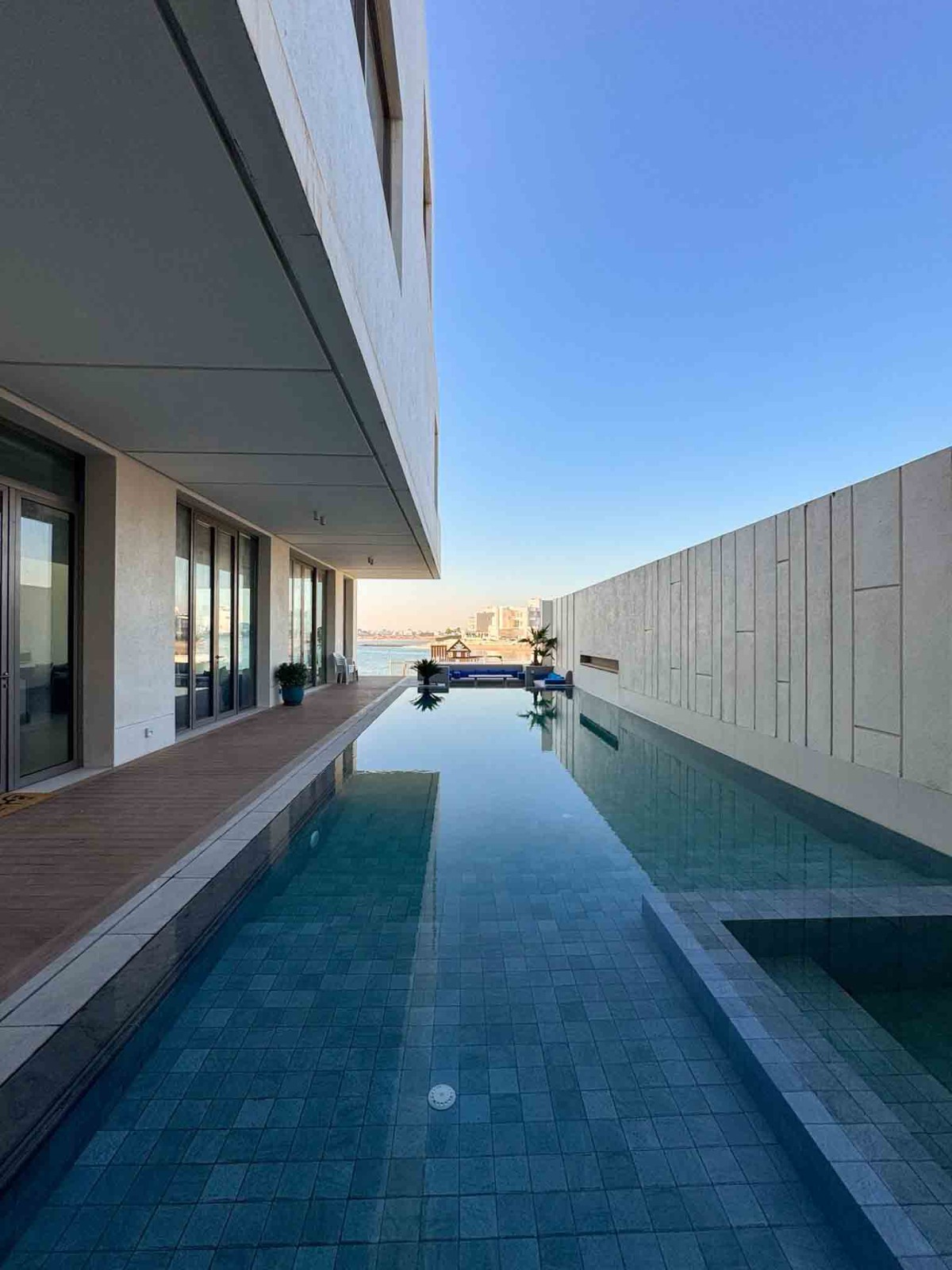 - صالة كبيرة مطلة على المسبح والبحر